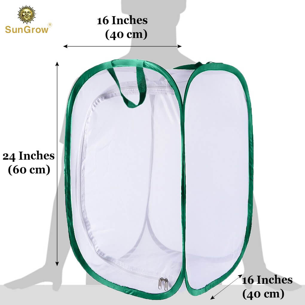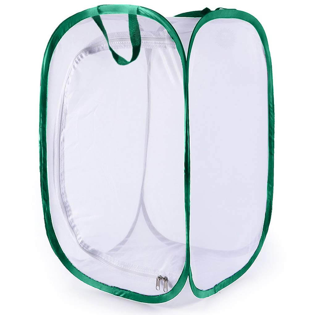 - ✔ STURDY POP-UP CAGE FOR GROWING AND BREEDING BUTTERFLIES — Now you can experience metamorphosis unfolds before your eyes from your own backyard. Watch how larvae matures and gloriously become beautifully winged creatures with Butterfly Cage by SunGrow. Lightweight yet sturdy, this white with green piping pop-up cage will complement your garden wonderfully.